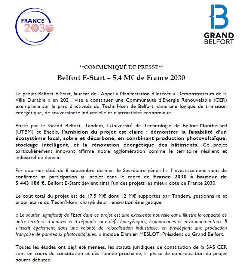 5 443 186 €. Belfort E-Start devient ainsi l’un des projets les mieux doté de France 2030 !